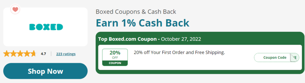 You can save 20% off your first order with this Swagbucks promo code for Boxed, and earn 1% cash back on your grocery purchase. Out of over 200 member reviews, Boxed has an average score of 4.7 out of 5 stars.