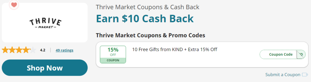 Get free standard shipping on all orders $35+. Get $10 free cash back with a year membership (amounting to a savings of 17%) and a Thrive coupon to save 15% off your first purchase.