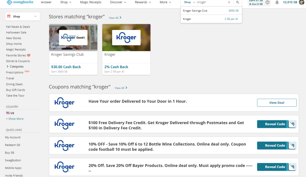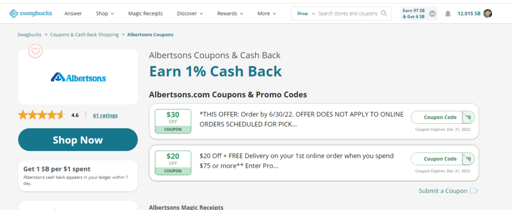 - Claim cashback online! Yes, you can earn cash back rebates for your online purchases from supermarkets and pharmacies too. Not all food items are eligible, but many are. Swagbucks offers you exclusive deals and cash back for shopping at Kroger, Albertsons, Sam’s Club, Organic Baby Food, Vons, Rite Aid, CVS, and Walgreens.